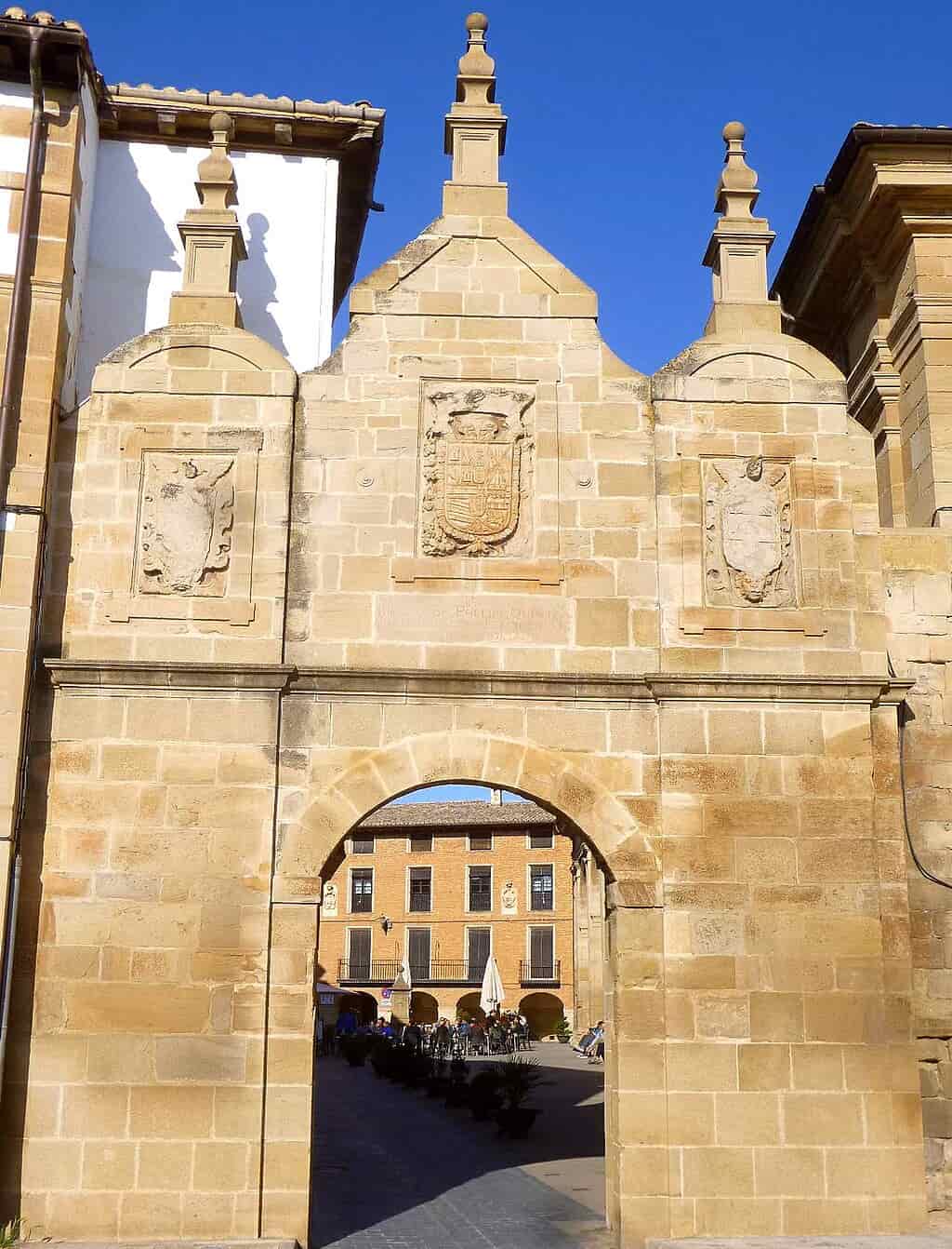 La Puerta de Castilla en particular era la entrada principal en el lado oeste de la villa; aún exhibe sobre su arco las armas de Felipe V, recuerdo de los tiempos en que la localidad estuvo bajo la órbita del reino de Castilla. Ambas nos conducen a la plaza porticada de Santa María, corazón neurálgico de la villa desde hace siglos.