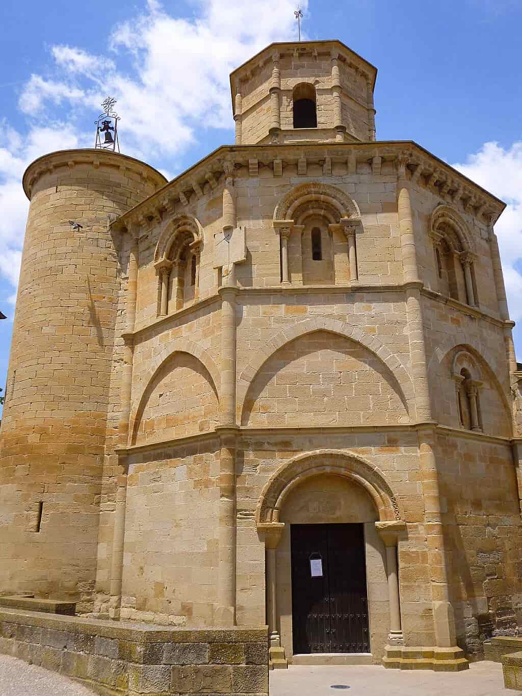 Su diseño de ocho lados recuerda a la iglesia de Eunate más al este. Durante mucho tiempo se ha especulado con que fue construida por una cofradía medieval inspirada en los caballeros templarios, dado su inusual estilo orientado a Jerusalén. En su interior, una hermosa bóveda de nervios cruzados sorprende por su complejidad geométrica.