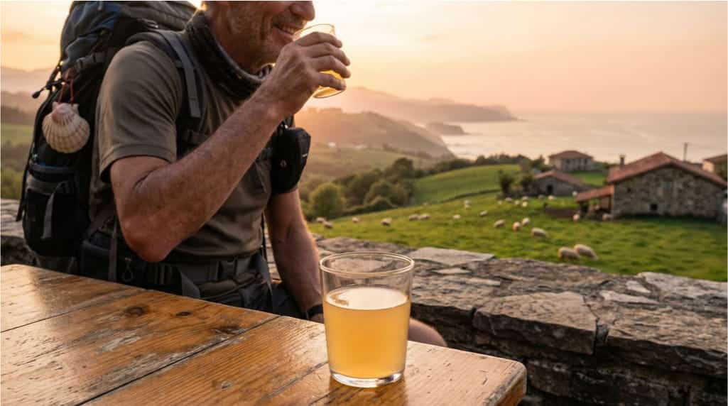 Den Camino Primitivo zu beginnen, ist für viele eine Mischung aus Emotion und Nervosität. Wenn du einen ersten Kontakt möchtest, tue es am besten ruhig: Setz dich, beobachte das Escanciado, bestelle etwas zu essen und verstehe den Rhythmus. Denk daran: Der „culín“ wird sofort getrunken und ist kein „langes Getränk“.