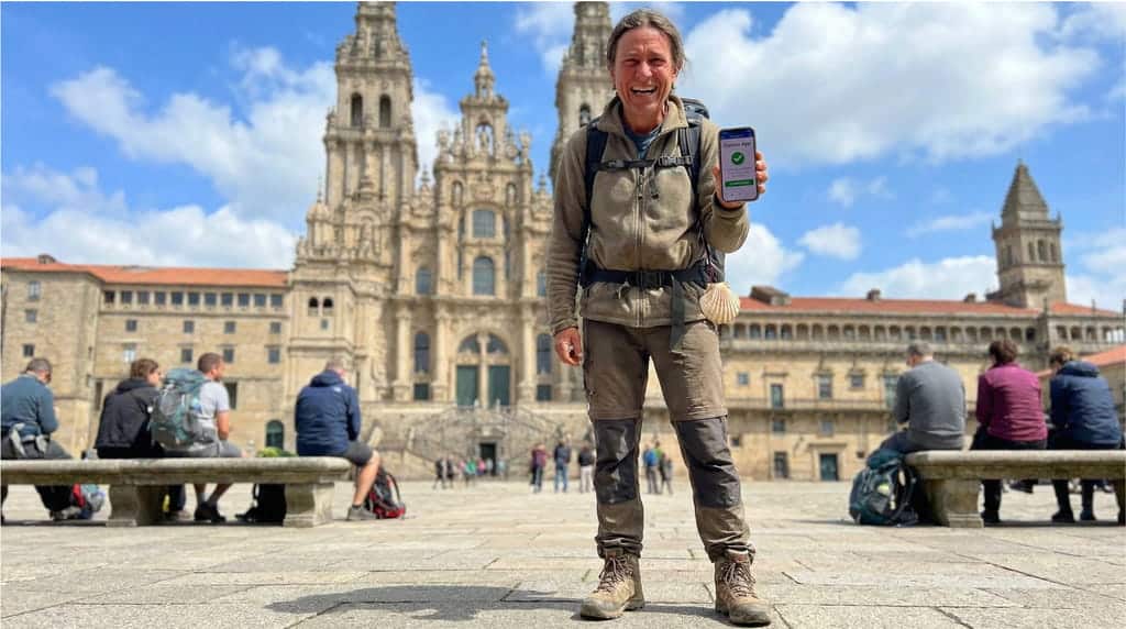 Das bedeutet, dass der Vorgang, deine Compostela zu erhalten, bei Ankunft schneller geht, da deine Daten bereits mit dem digitalen Ausweis verknüpft sind. Die App ermöglicht sogar, den „letzten Stempel“ bei der Ankunft in Santiago digital zu erhalten und beschleunigt die abschließende Überprüfung.