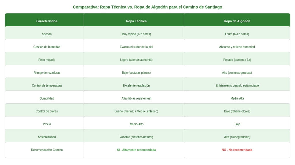 Dans le cadre de cette préparation, le choix de l’équipement pour le Camino de Santiago joue un rôle central, et la décision la plus critique et souvent sous-estimée est celle du choix des vêtements. La question éternelle pour le pèlerin novice comme expérimenté est : vêtements techniques ou coton?.